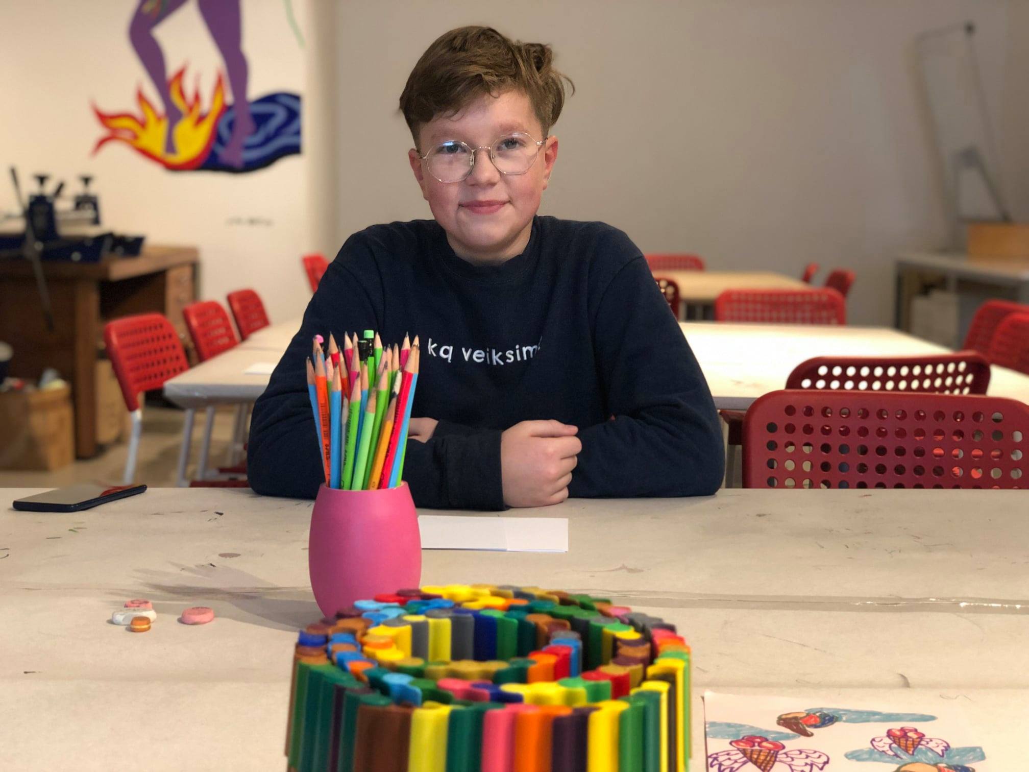 Užsiėmimo metu, kartu su Šiaulių dailės galerijos edukatorėmis Živile ir Roberta, bandysime išsiaiškinti kokie svarbiausi įvykiai, atradimai keitė meno ir menininkų kūrybos galimybes. Kas pasikeitė atsiradus pieštukui? Iš ko buvo gaminamos spalvos? Kaip keitėsi menininko dirbtuvės? Kokie išradimai leido menininkams tapyti lauke? Ir kokiomis priemonėmis kuriame šiandien? Sužinoję atsakymus ir atlikę keletą kūrybingumo užduočių patys išbandysime grafikos techniką ir susikursime savo asmeninius grafinius atspaudus.